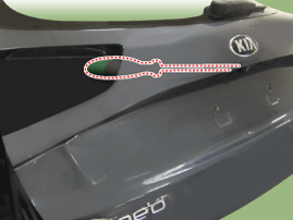С помощью фонарика найдите небольшой зажим (A), удерживающий фонарь освещения номерного знака.