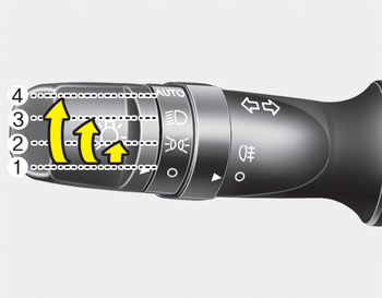 Для управления освещением поверните ручку на конец рычага управления к одному из следующих должности: