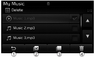 На экране списка можно удалить файлы, которые вы ранее сохранили в Моя музыка.