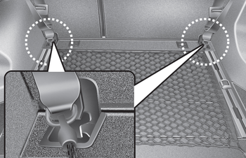 Чтобы предметы не смещались в грузе область, вы можете использовать четыре держателя, расположенные в грузовом отсеке для крепления багажа сеть.