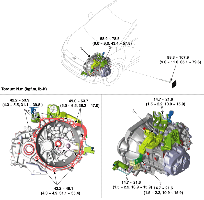 7. Кронштейн трубки сцепления 8. Цилиндр выключения сцепления в сборе |