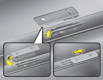 1. Вставьте тонкий инструмент (монета или отвертка с плоским лезвием) в слот и сдвиньте крышку по стрелке на крышке.