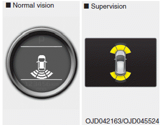 Отображает область обнаружения препятствия при движении вперед или назад.