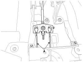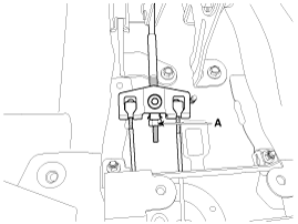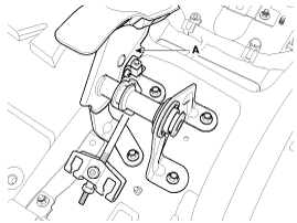 Снимите узел рычага стояночного тормоза (А) после откручивания болтов.