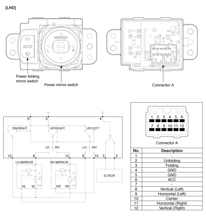 Переключатель питания наружных зеркал заднего вида Процедуры ремонта