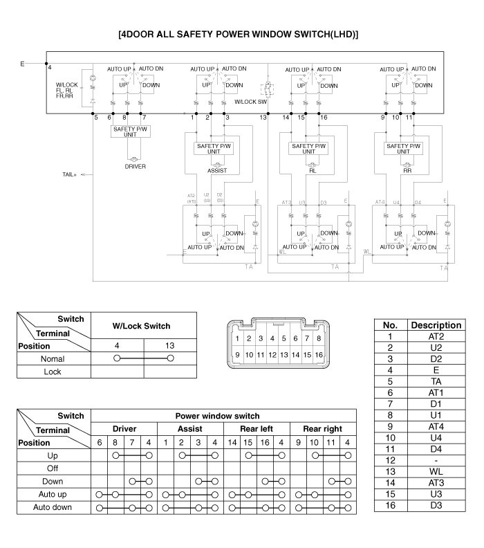 | Переключатель пассажирского и заднего стеклоподъемника |