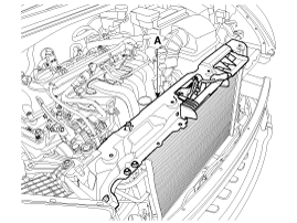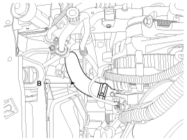 Отсоедините верхний шланг радиатора (А) и нижний шланг (В).
