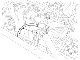 Отсоедините переливной шланг (А) от радиатора.