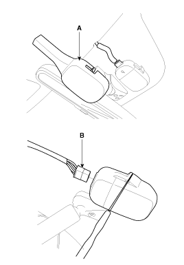 защелку, используя отверстие в крышке (B) с помощью маленькой (-) отвертки (A).