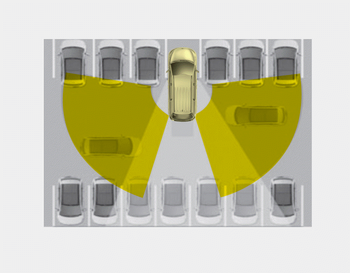 Мониторы с функцией предупреждения о перекрестном движении сзади приближаясь к поперечному движению со стороны с левой и правой стороны автомобиля, когда ваш автомобиль движется задним ходом.