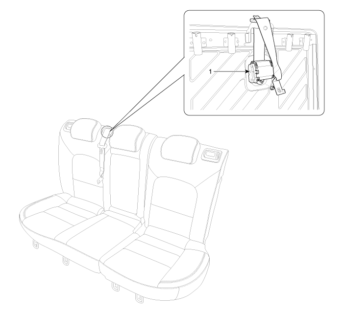 1. Натяжитель ремня безопасности заднего центрального сиденья.