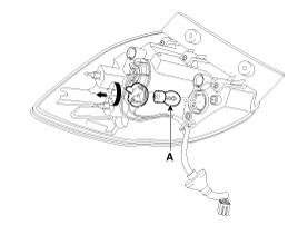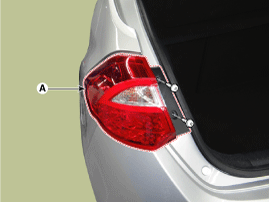 Снимите задний фонарь в сборе (А) после удаления болтов и разъема.