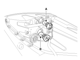 Замените лампу указателя поворота (А) и лампу стоп-сигнала (В), поворачивая