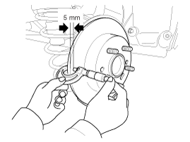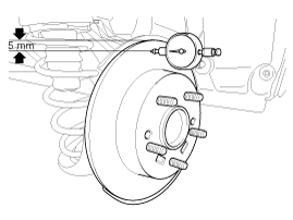 Если биение превышает предельную спецификацию, установите тормозной диск