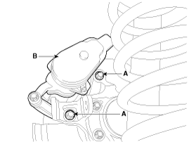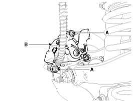 Ослабьте болты крепления суппорта (В), затем снимите задний суппорт.
