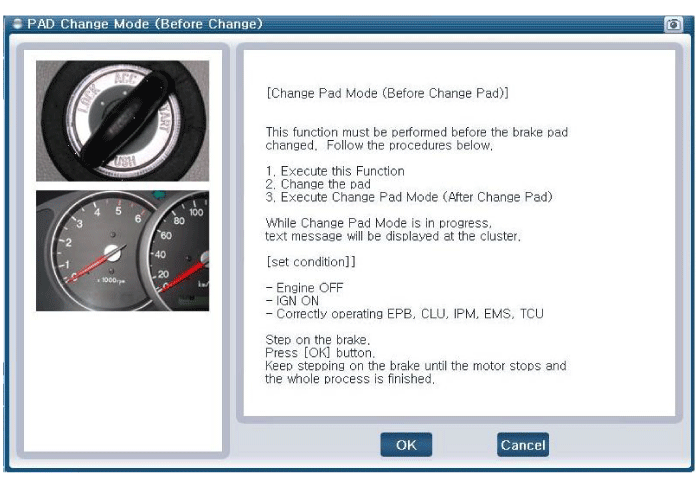 Выполните процедуру «Режим замены колодки (перед заменой колодки)» с помощью GDS.