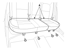Ослабьте болт крепления спинки заднего сиденья (А).
