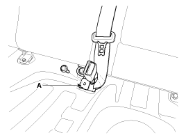 Ослабьте болт крепления замка заднего центрального ремня безопасности (А).