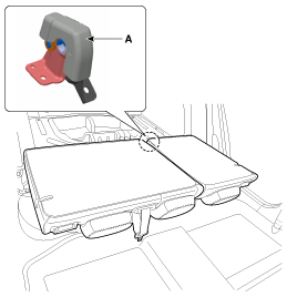 Снимите крышку кронштейна центрального шарнира спинки заднего сиденья (А).