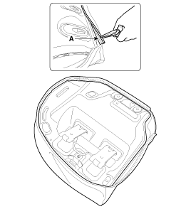 Отсоедините защитный кожух подушки заднего сиденья (А).