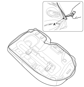 После снятия кольцевых зажимов (А) на задней части подушки сиденья и