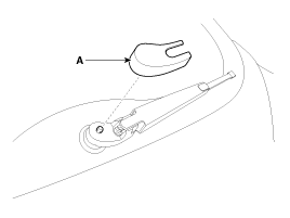 Снимите рычаг и щетку заднего стеклоочистителя (А) после снятия гайки заднего стеклоочистителя.