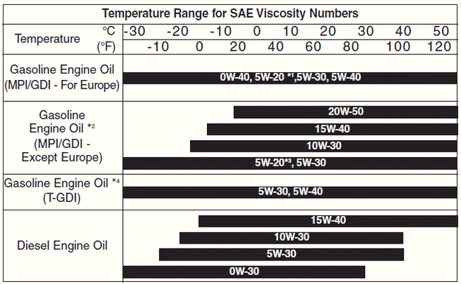 Вязкость (густота) моторного масла имеет влияние на экономию топлива и холодную погоду эксплуатации (запуск двигателя и моторное масло текучесть). Моторные масла с меньшей вязкостью могут обеспечивают лучшую экономию топлива и холод атмосферостойкость, однако, более высокая вязкость моторные масла необходимы для удовлетворительного смазывание в жаркую погоду. Использование масел из любая вязкость, отличная от рекомендованной может привести к повреждению двигателя.