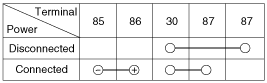 когда питание и земля подключены к клеммам №85 и №86.