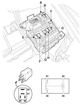 F : реле SSB4 (IG2) G : реле SSB3 (IG1) H : Пусковое реле |