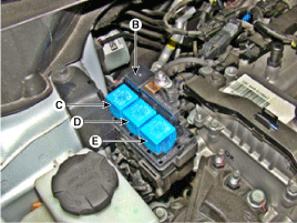 B : Реле C/вентилятора (высокий уровень) C : Реле вентилятора D: реле SSB2 (ACC) |