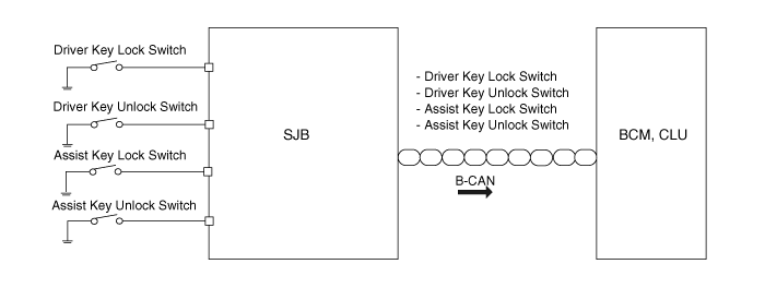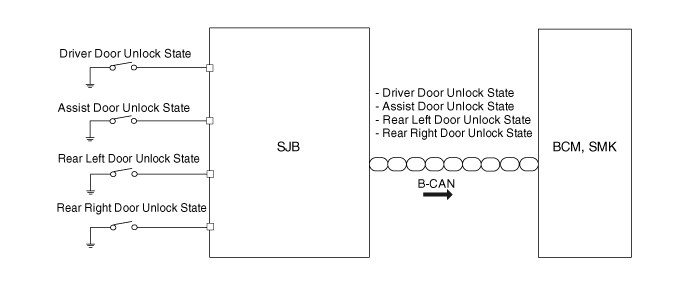 SJB получает команды от BCM, приводя в действие запирание/отпирание дверей.