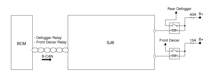SJB получает команды от BCM, управляя антиобледенителем заднего стекла.