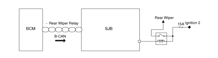 SJB получает команды от BCM, приводя в действие задний стеклоочиститель.