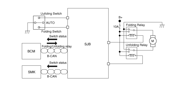 от BCM SJB управляет реле складывания, раскладывания зеркал и
