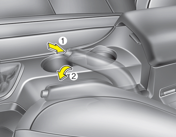 Чтобы отпустить стояночный тормоз, сначала включите ножной тормоз и подтянуть стояночный рычаг тормоза слегка. Во-вторых, нажмите кнопку разблокировки (1) и опустить парковочный рычаг тормоза (2), удерживая нажатой кнопку.