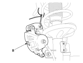Снимите болты крепления тормозного суппорта (А) и установите тормозной