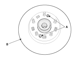 Ослабьте крепежные винты (A-2ea) и снимите тормозной диск (B).
