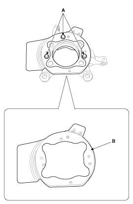 Ослабьте болты (A-4ea) и снимите поворотный кулак (B) со ступицы.