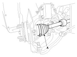 Отсоедините приводной вал (А) от передней ступицы в сборе.