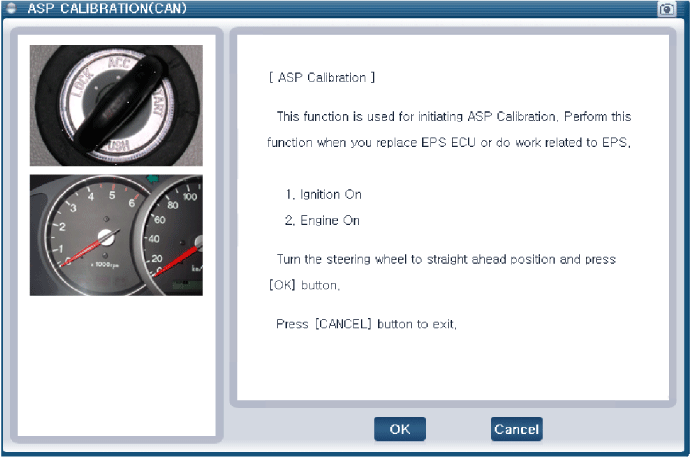 Когда калибровка ASP или распознавание типа EPS завершены, поверните