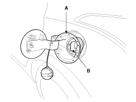 Снимите корпус лючка топливного бака (А).