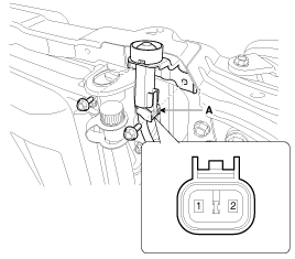 Отсоедините разъем от выключателя капота (А).