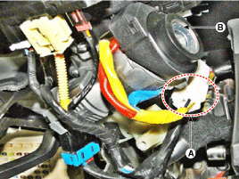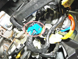 Отсоедините разъем предупреждения/иммобилайзера ключа (А).