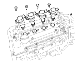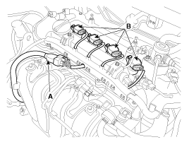 Отсоедините разъем удлинителя форсунки (А) и катушку зажигания.