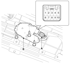 Снимите двигатель панорамной крыши (B), отвернув 3 болта.