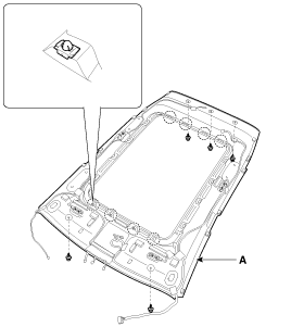 Отсоедините зажимы, затем снимите обивку крыши в сборе (А).