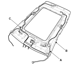 Отсоедините жгут проводов обивки крыши (А) от обивки крыши (В).