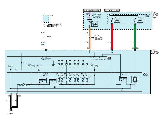 Электропитание активного датчика частоты вращения колеса FL, FR, RL, RR
