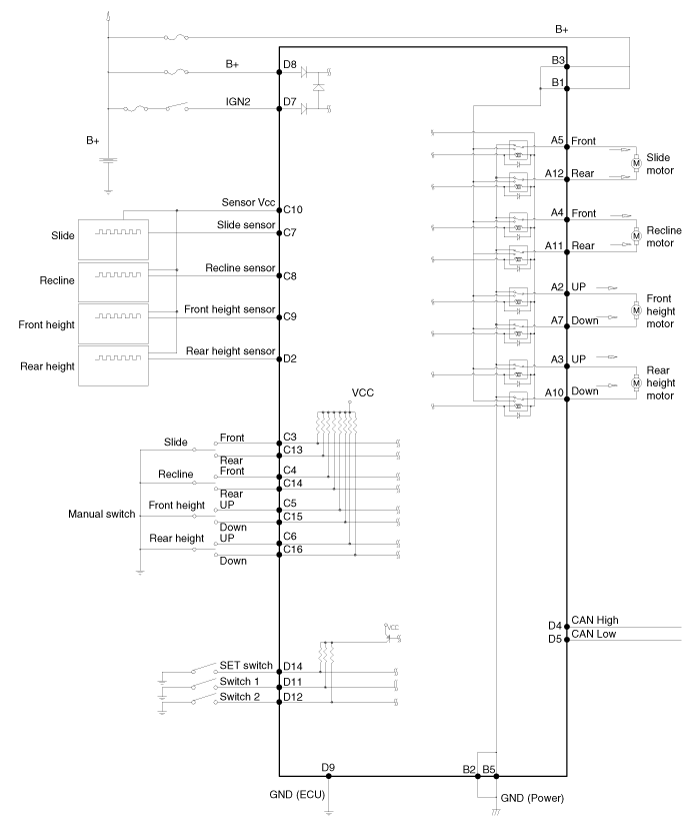 Руководство по обслуживанию Kia Cee'd JD: Натяжитель заднего центрального ремня безопасности Компоненты и расположение компонентов