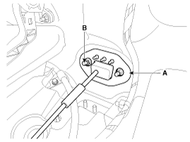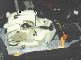 Соедините рычаг переключения передач (В) в салоне с тросом переключения передач (А).